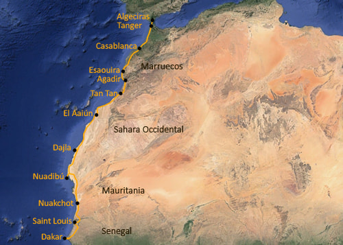 Países cruzados: Marruecos, Sahara Occidental, Mauritania y Senegal
